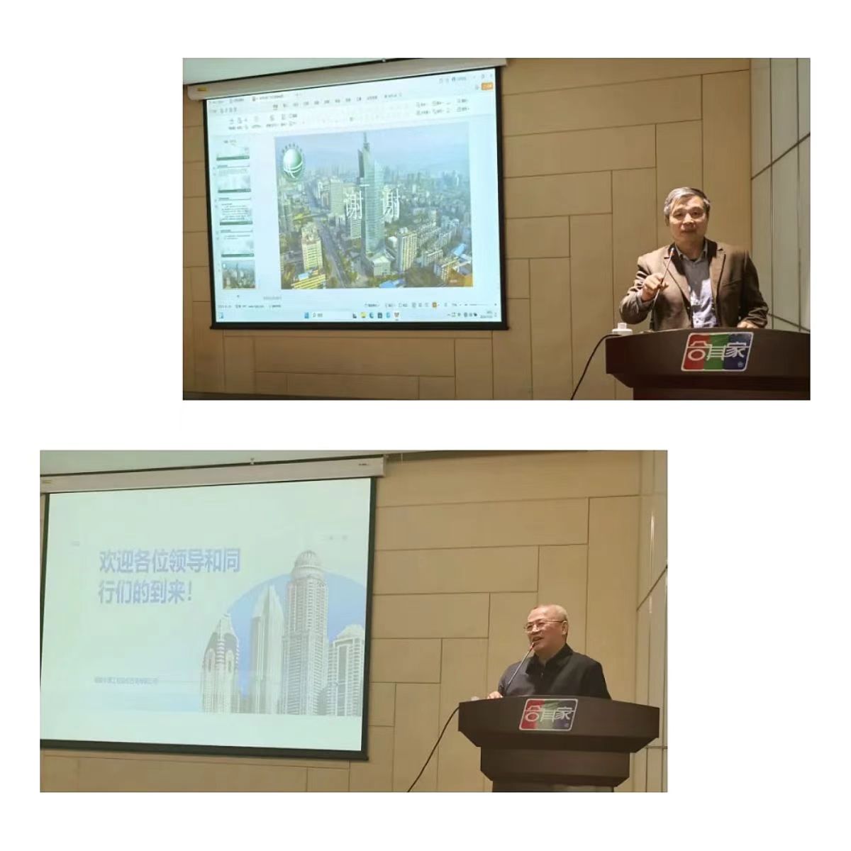 福建建设工程造价管理协会常务副理事长金玉山先生以及福建华夏工程造价咨询有限公司董事长黄启兴先生分别上台为本次讲座致辞。